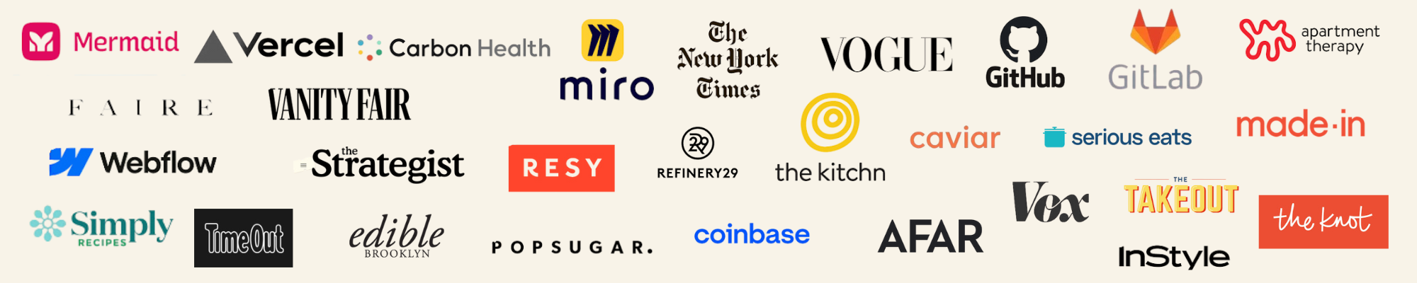 My work has appeared in The New York Times, Vanity Fair, and New York Magazine, and I partner regularly with companies like GitHub, Vercel, Resy, Faire, and Webflow to craft editorial, thought leadership, product narratives, and content strategy.